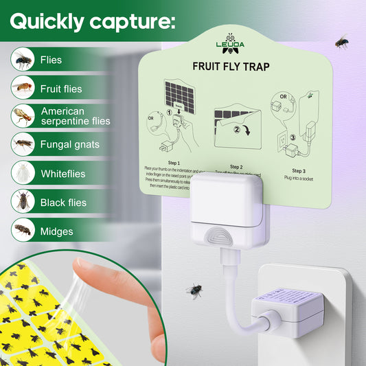 Leuoa Fruit Fly Traps for Indoors, Plug in UVA Fly Catcher for Kitchen and Dining Room 1 Device with 5 Yellow Glue Cards
